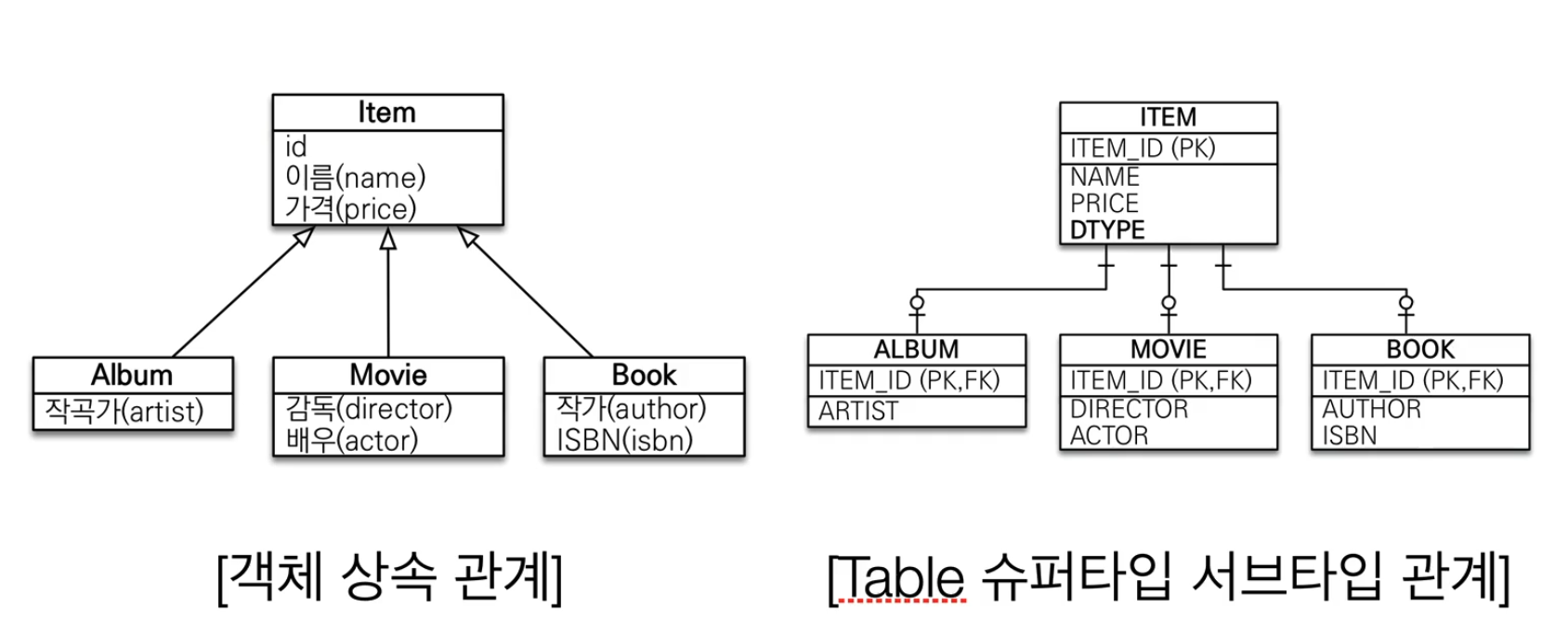 관계형 데이터베이스는 기본적으로 상속 관계가 없다.