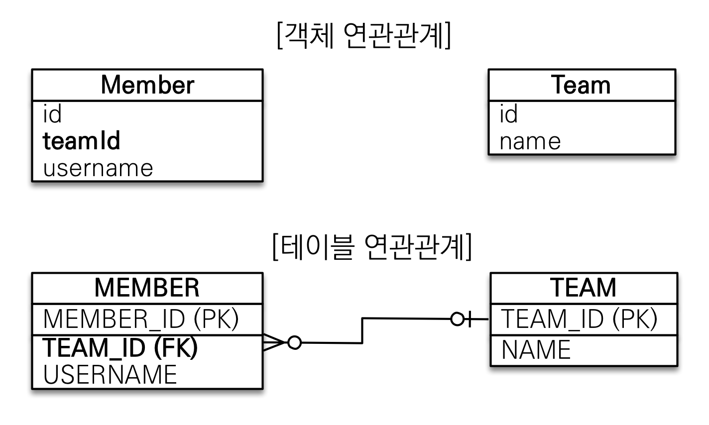 - 객체의 참조와 테이블의 외래 키를 매핑