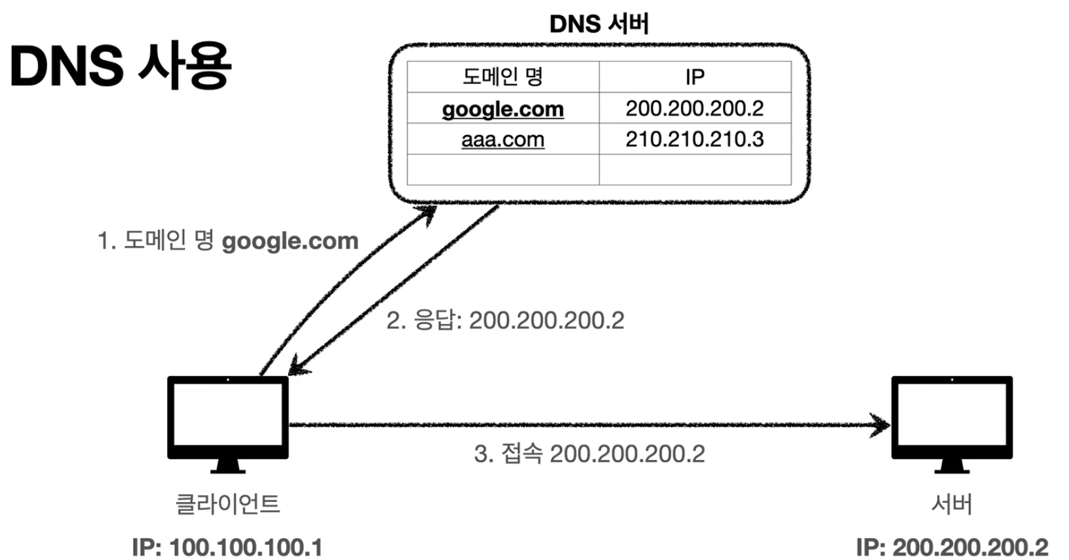 도메인 명을 검색하면 DNS 서버가 그 도메인 명에 맞는 IP를 응답한다. 그럼 클라이언트는 그 IP에 맞는 서버에 접속하면 되는 것이다.
