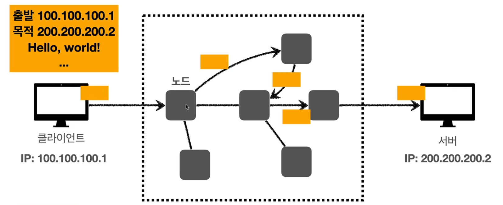 IP 패킷 : 출발지의 IP, 목적지의 IP, 기타 정보들이 포함되어 있다