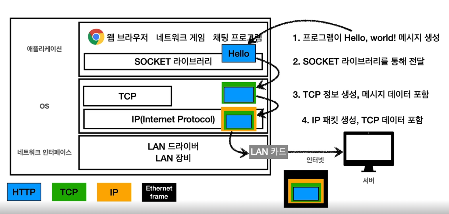 내가 만약 채팅 프로그램으로 뉴욕에 있는 친구에게 hello world라는 메시지를 보내고 싶다고 가정해보자.
