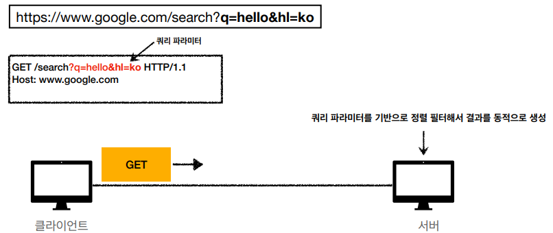 GET은 쿼리 파라미터를 사용해서 데이터를 전달한다.