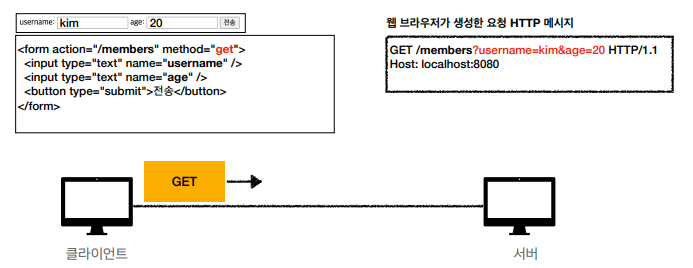 HTML 폼으로 전송할 때 메서드를 GET으로 바꾸어서 전송할 수 도 있다.