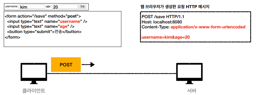 2.1 form의 내용을 메시지 바디를 통해서 전송(key=value, 쿼리 파라미터 형식)