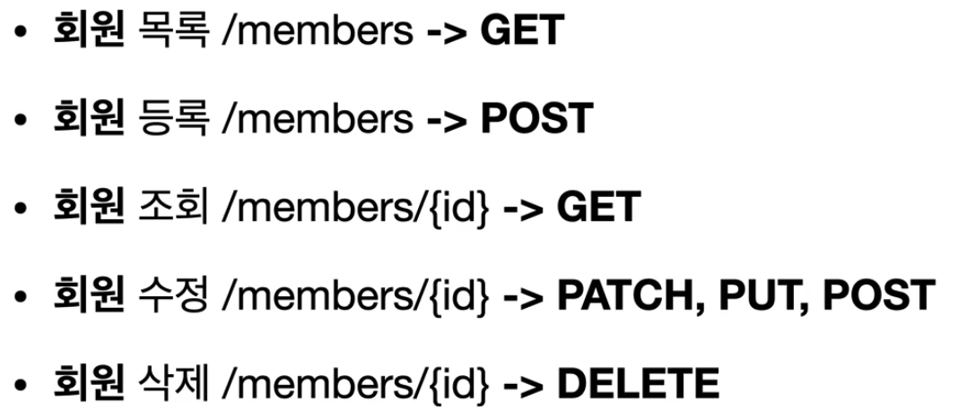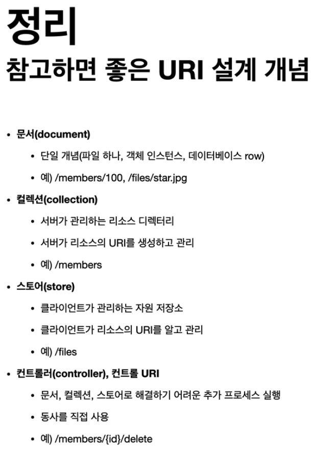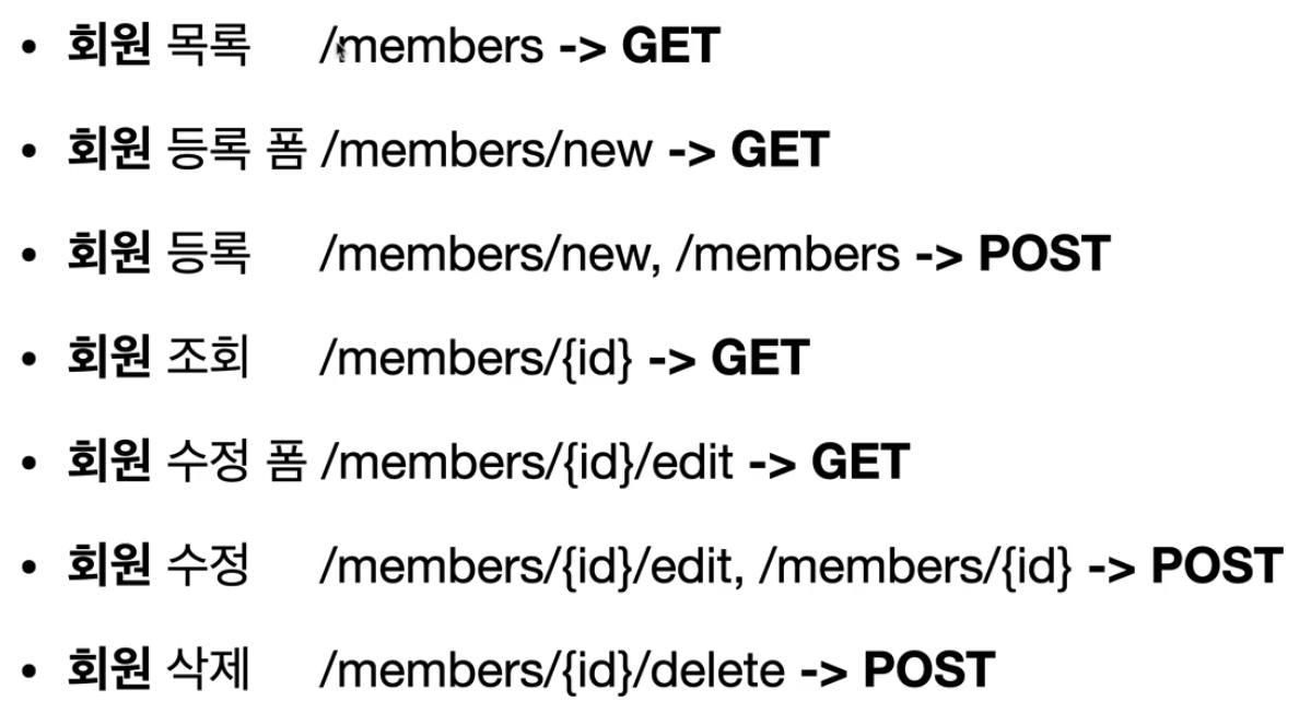 HTML FORM은 GET, POST만 지원하기 때문에 위의 '회원 삭제' 기능처럼 컨트롤 URI를 사용해야 한다.(DELETE 와 같은 메서드를 사용할 수 없기 때문에)