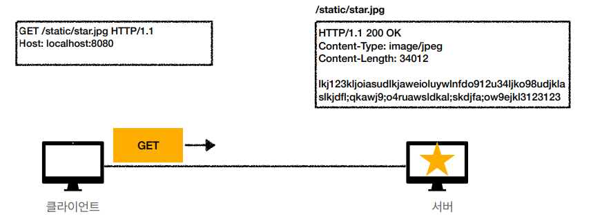 클라이언트에서 서버로 jpg를 요청한다고 가정한다. 서버는 star.jpg를 클라이언트에게 내려주는것이 전부이다.