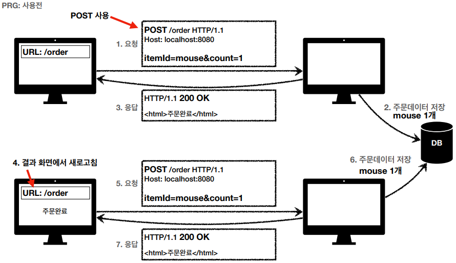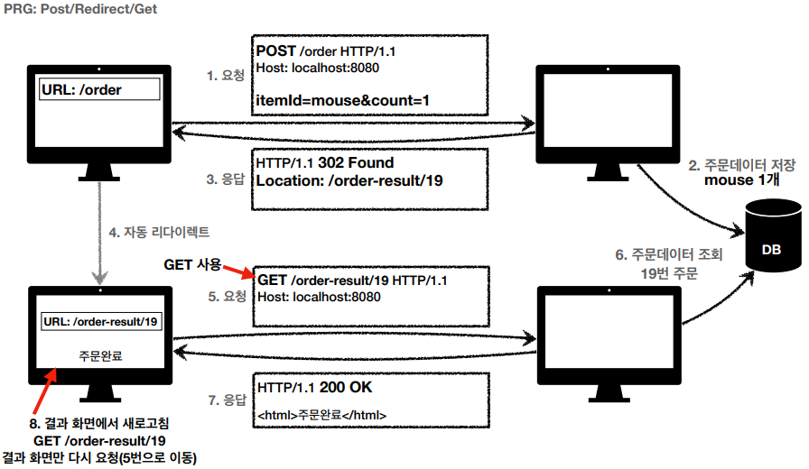 - 중복 주문 대신에 결과 화면만 GET으로 다시 요청한다.