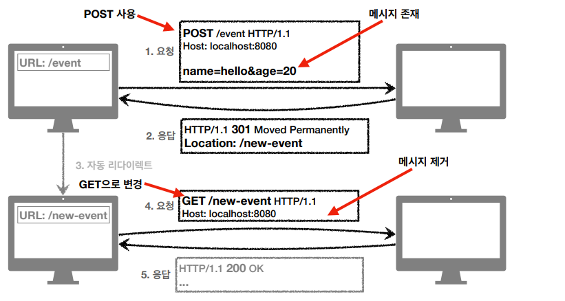 - 리다이렉트시 요청 메서드가 GET으로 변경