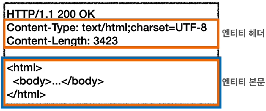 - Entity 헤더 : 엔티티 바디 정보, ex)Content-Type: text/html, Content-Length: 3423