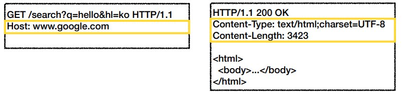 - Entity 헤더 : 엔티티 바디 정보, ex)Content-Type: text/html, Content-Length: 3423