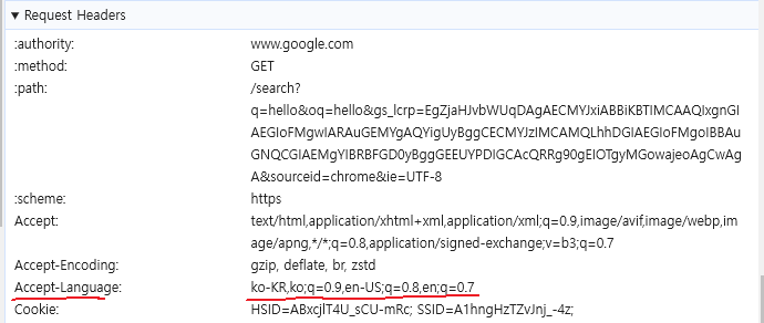 - Accept-Language: ko-KR,ko;q=0.9,enUS;q=0.8,en;q=0.7