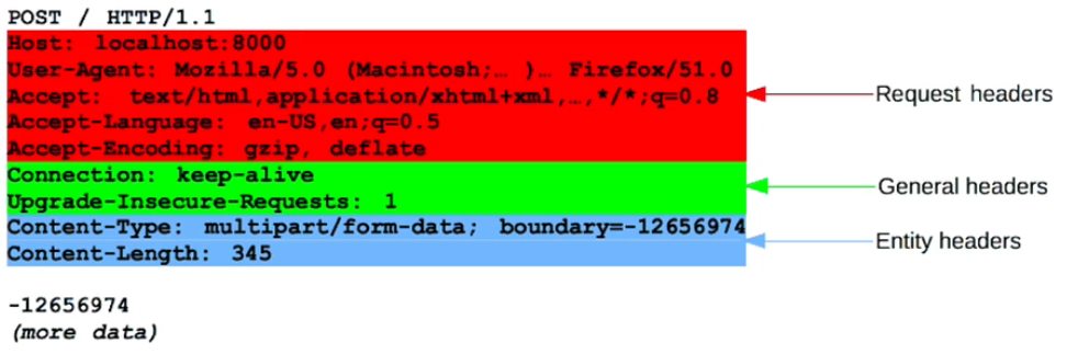 - Request 헤더 : 요청 정보, ex)User-Agent: Mozilla/5.0 (Macintosh; ..)