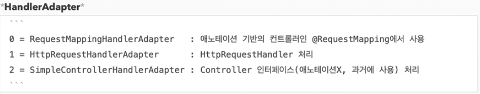 - 핸들러 어댑터 : 'org.springframework.web.servlet.HandlerAdapter'