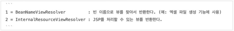 - 뷰 리졸버 : 'org.springframework.web.servlet.ViewResolver'