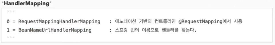 - 핸들러 매핑 : 'org.springframework.web.sergvlet.HandlerMapping'