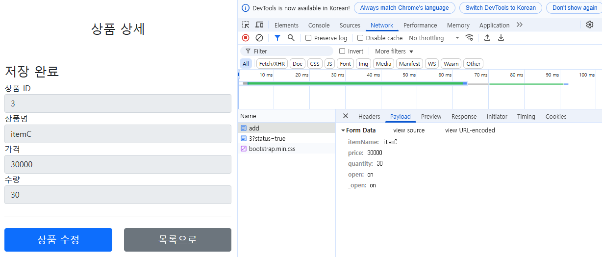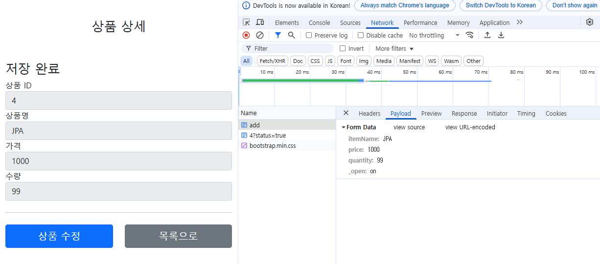 등록 폼에서는 드라마틱한 결과를 확인할 수 없었지만 수정폼에서는 조금 더 확인할 수 있다.
