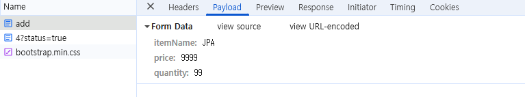 - name : th:field에서 지정한 변수 이름과 같다. name="itemName"