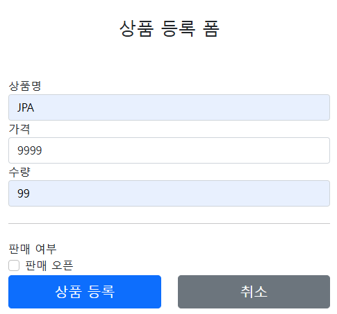 model.addAttribute("item", new Item()); //새롭게 추가된 부분