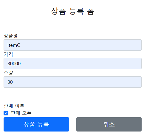 - id : th:field에서 지정한 변수 이름과 같다. id="itemName"