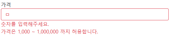 errors.put("price", "가격은 1,000 ~ 1,000,000 까지 허용합니다.");
