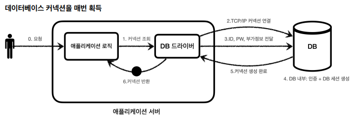 DB는 물론이고, 애플리케이션 서버에서도 TCP/IP 커넥션을 새로 생성하기 위한 리소스를 매번 사용해야 한다.