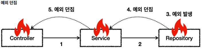 서비스나 컨트롤러 입장에서는 어짜피 본인이 처리할수도 없는 예외를 의존해야 하는 큰 단점이 발생하게 된다.