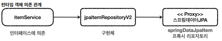 - itemService -> jpaItemRepositoryV2 -> springDataJpaItemRepository(프록시 객체)