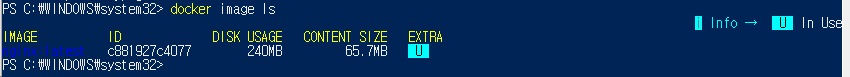 docker image ls를 통해 조회하면 다음과 같은 결과가 나타난다.(ls : list의 약자)
