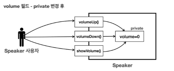 volume 필드를 Speaker 클래스 외부에서는 접근하지 못하게 막는 것이다.
