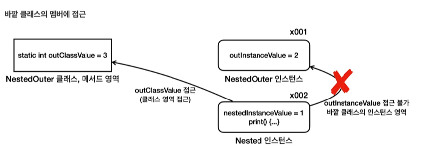3. 바깥 클래스의 "인스턴스 멤버"에는 접근할 수 없다.
