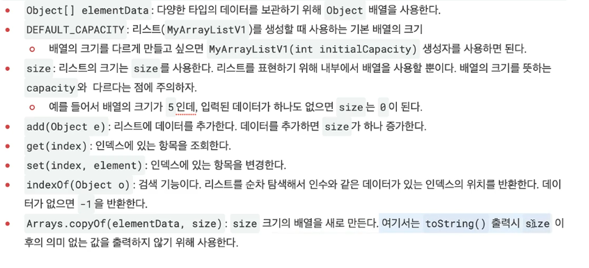 정리 : 지금까지 우리가 만든 자료 구조를 배열 리스트(ArrayList)라고 한다. 리스트(List)자료 구조를 사용하는데, 내부의 데이터는 배열(Array)에 보관하는 것이다.