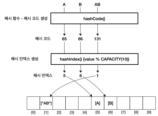 따라서 같은 해시 인덱스에 데이터가 저장된다.