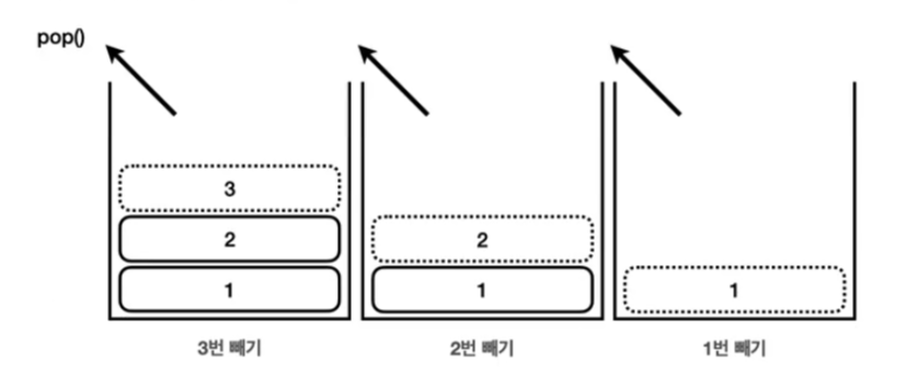 1(넣기) -> 2(넣기) -> 3(넣기) -> 1(빼기) -> 2(빼기) -> 3(빼기)