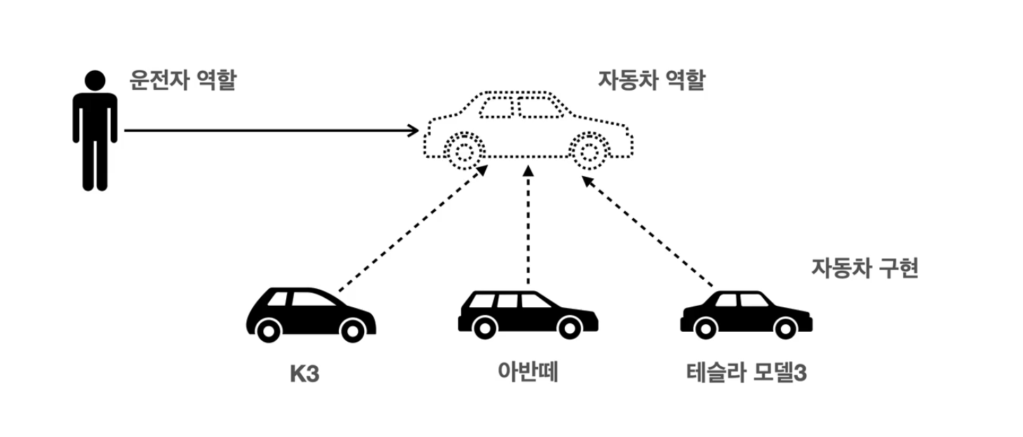 - 클라이언트(운전자)는 대상의 역할(인터페이스)만 알면 된다