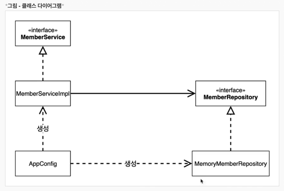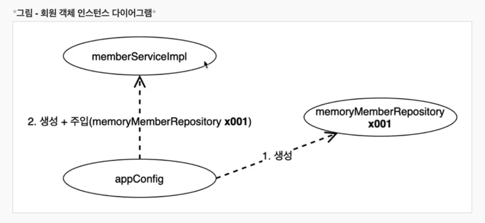 - new MemoryMemberRepository() 이 부분 중복이 되거되었다, 이제 MemoryMemberRepository를 다른 구현체로 변경할 때 한 부분만 변경하면 된다.