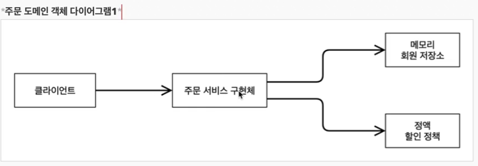 OrderServiceImpl은 MemberRepository,DiscountPolicy에 의존한다는 것을 알 수 있다.