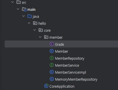 이 MemberRepository를 구현하는 MemoryMemberRepository 클래스를 만든다.