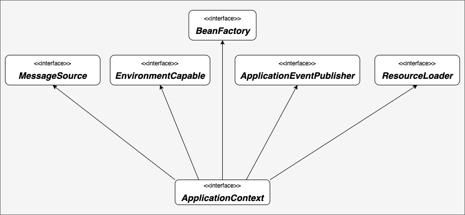 - ApplicationContext는 BeanFactory의 기능을 상속받는다.