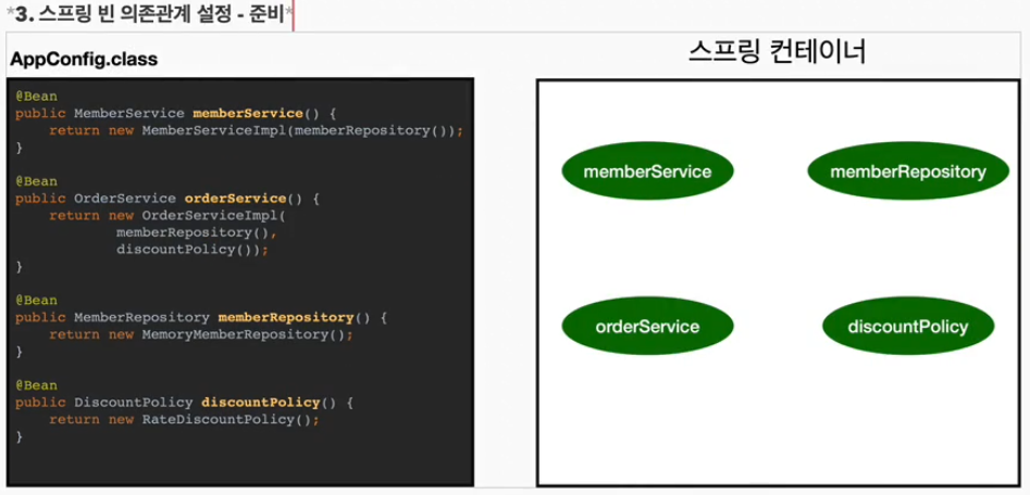 *정리 : 스프링 컨테이너를 생성하고, 설정(구성) 정보를 참고해서 스프링 빈도 등록하고, 의존관계도 설정했다.