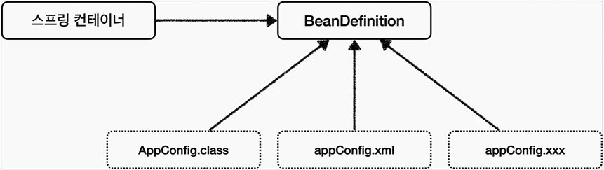 - 스프링 컨테이너는 자바 코드인지, XML인지 몰라도 된다. 오직 BeanDefinition만 알면 된다.