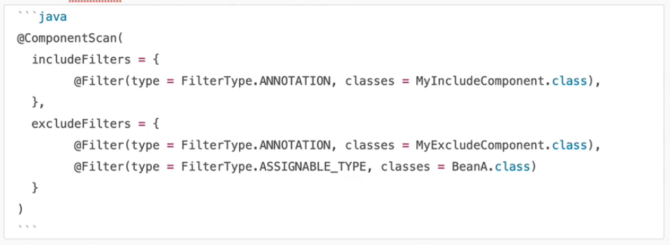 includeFilters = @Filter(type = FilterType.ANNOTATION,