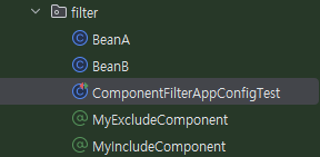 includeFilters를 통해 MyIncludeComponent는 추가하였고 excludeFilters를 통해 MyExcludeComponent는 제외하였다.
