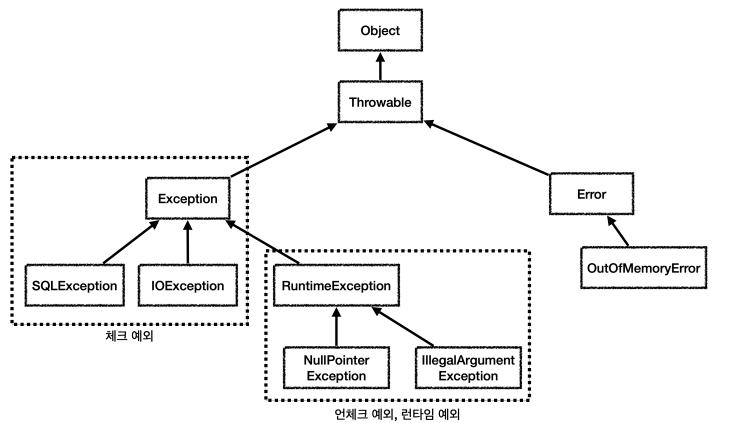 예외 계층스프링이 제공하는 예외 추상화를 이해하기 위해서는 먼저 자바 기본 예외에 대한 이해가 필요하다.예외는 자바 언어의 기본 문법에 들어가기 때문에 대부분 아는 내용이다. 자세한 자바 예외는 다음 포스팅을 참고하자.https://surrealcode.tistory.com/65 자바 예외처리 1예외처리는 정상 흐름과 예외 흐름을 명확하게 분리하여 가독성을 높이는 데 있다. 우선 다음의 예제를 살펴보자. 이 예제는 서버와 통신(을 한다고 가정한다)하여 메세지를 보내는 예제이다.surrealcode.tistory.com 예외의 기본 내용을 간단히 복습하고, 실무에 필요한 체크 예외와 언체크 예외의 차이와 활용 방안에 대해서도 알아보자. 예외 계층 그림- Object : 예외도 객체이다. 모든 객체의 최상..