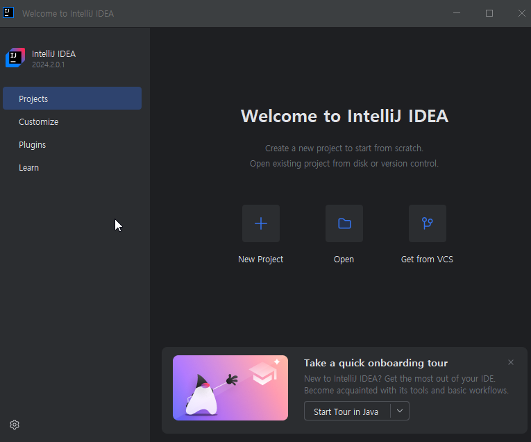 인텔리제이를 처음 실행하면 이런 화면이 뜬다