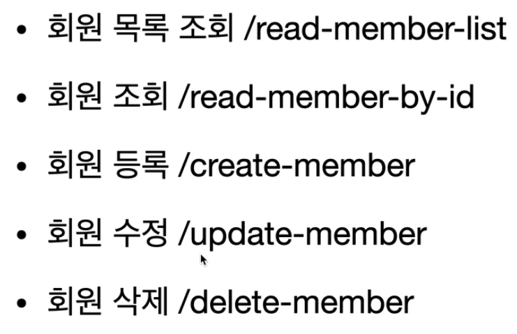 - 회원을 등록하고 수정하고 조회하는 것을 모두 배제하고, 회원이라는 리소스만 식별하여 URI를 매핑한다.