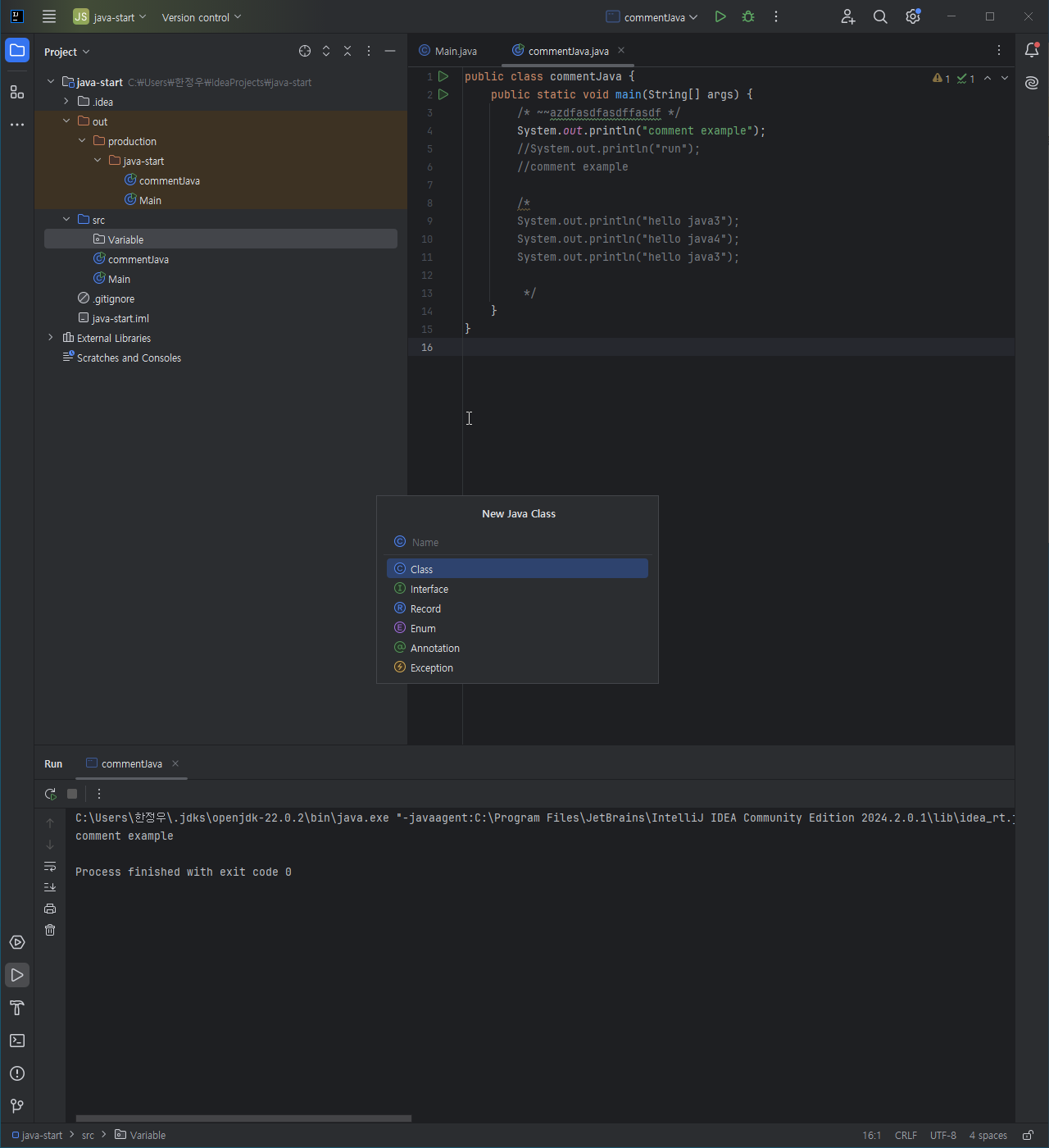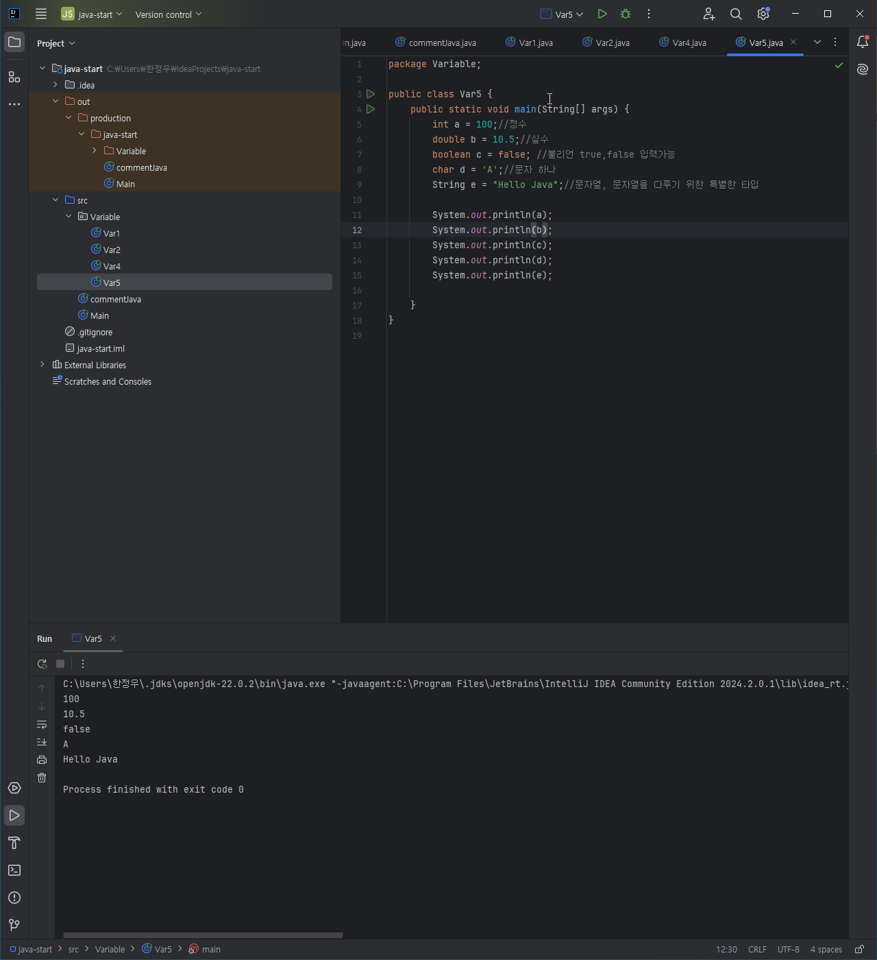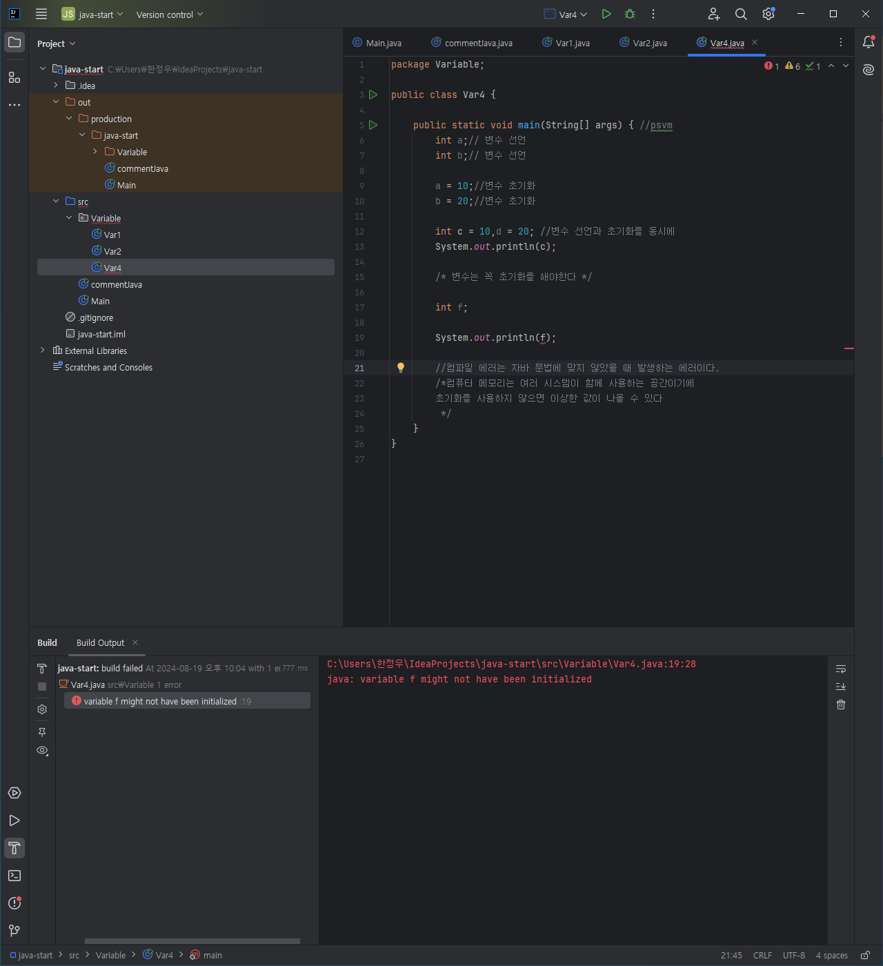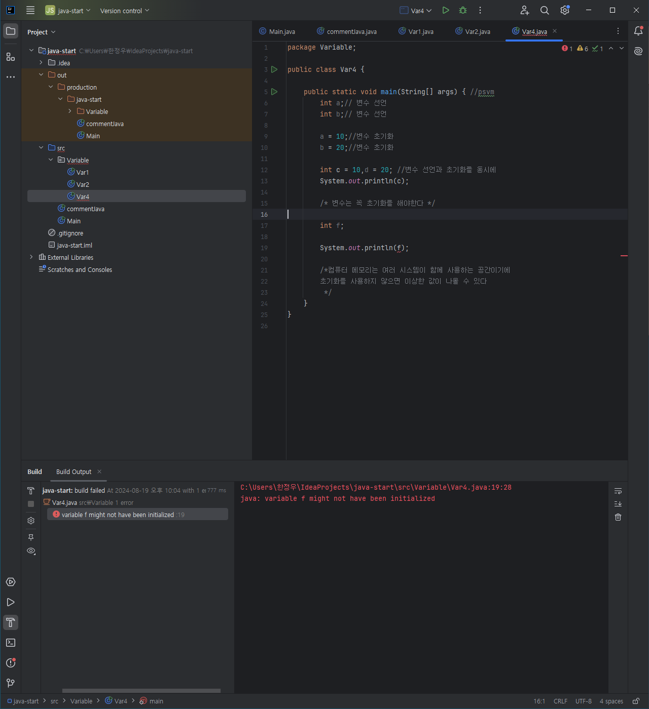 패키지명은 Variable로 진행을 하였으나 FM대로라면 패키지명은 소문자로 하는 것이 국룰인것으로 알고 있다.