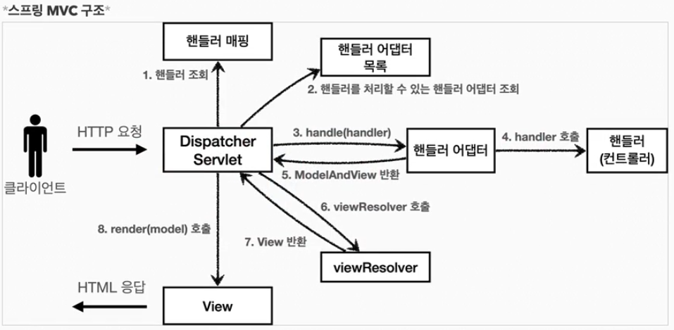 기존 만들었던 MVC 프레임워크와 사실 스프링MVC 구조는 거의 동일하다(약간 이름에 차이가 있을 뿐)