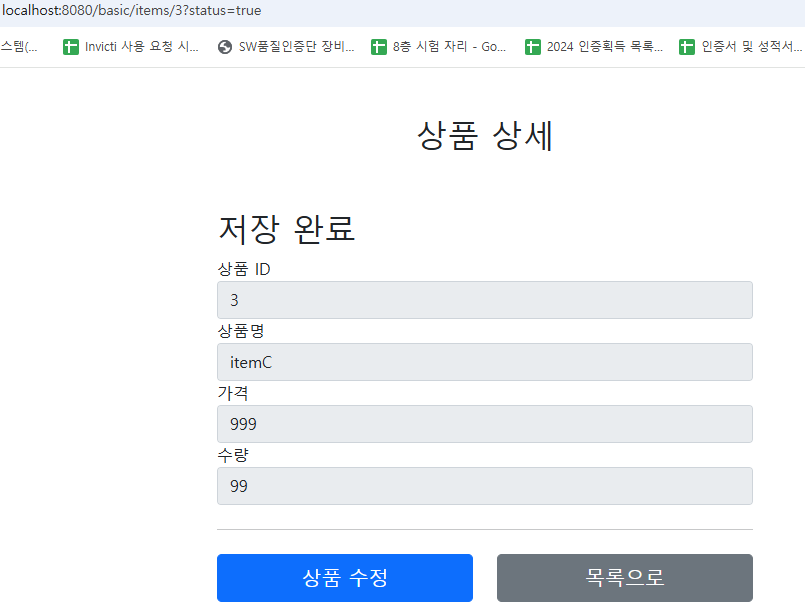 이 저장 완료 메시지는 status=true일때만 나타나는 것이므로 상품목록에서 상품 상세로 이동한 경우에는 해당 메시지가 출력되지 않는다.
