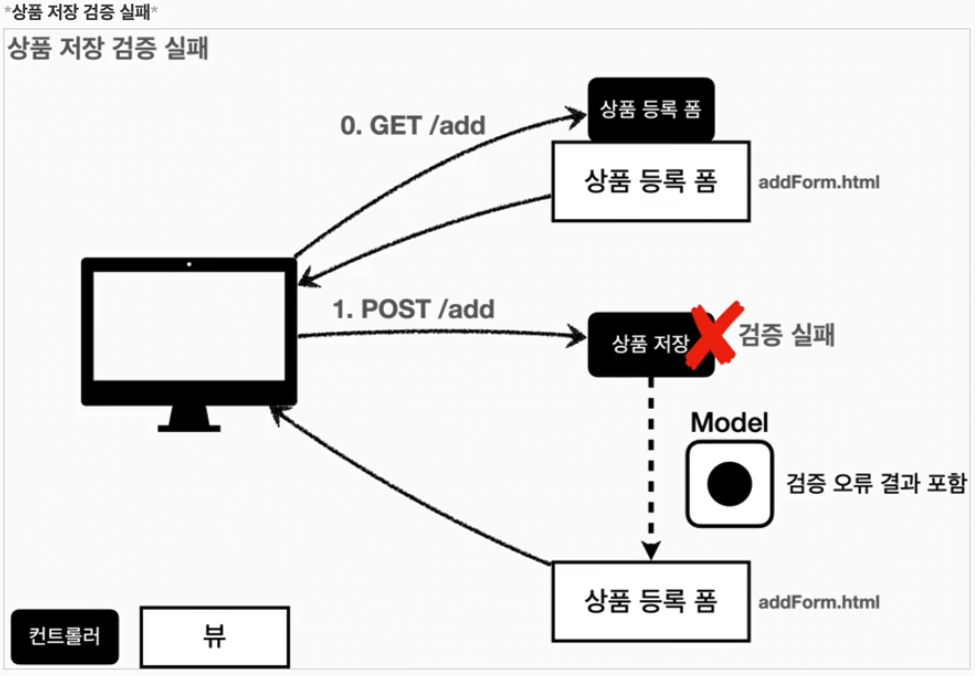 --> 검증 실패시 입력한 데이터들을 모델에 다시 담고, 검증 오류 결과까지 포함한 이후 고객에게 보여주어야 한다.