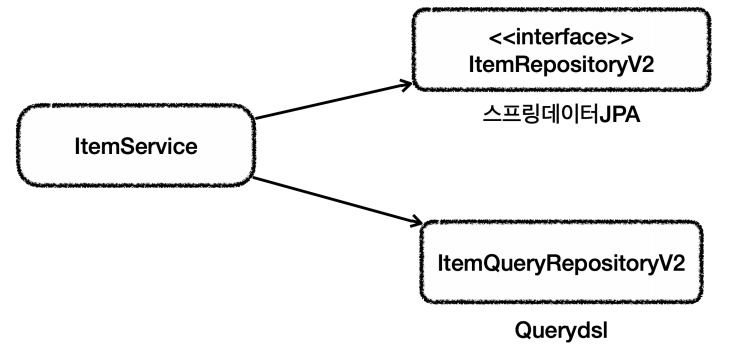 - ItemServiceV2는 ItemRepositoryV2와 ItemQueryRepositoryV2를 의존한다.